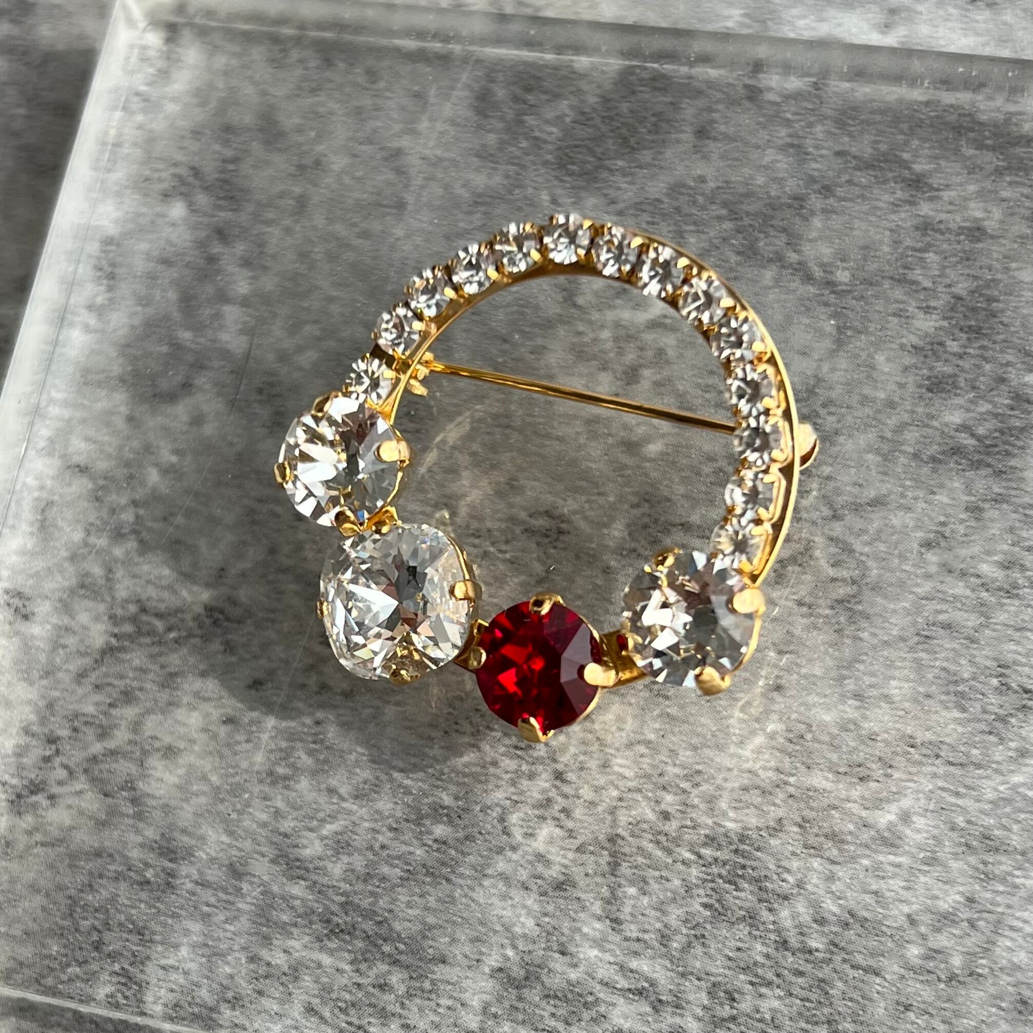 CrystalGlassBroochRed