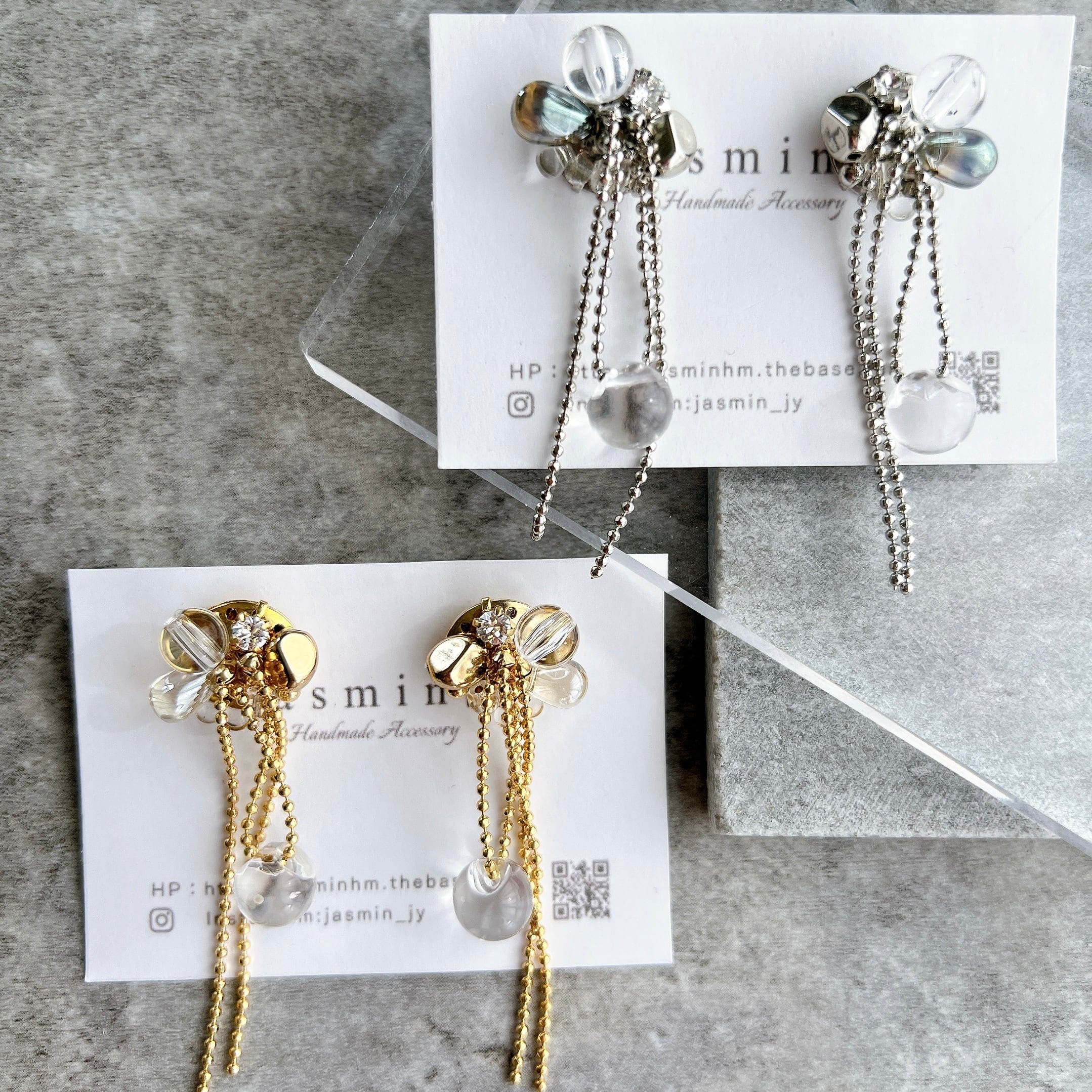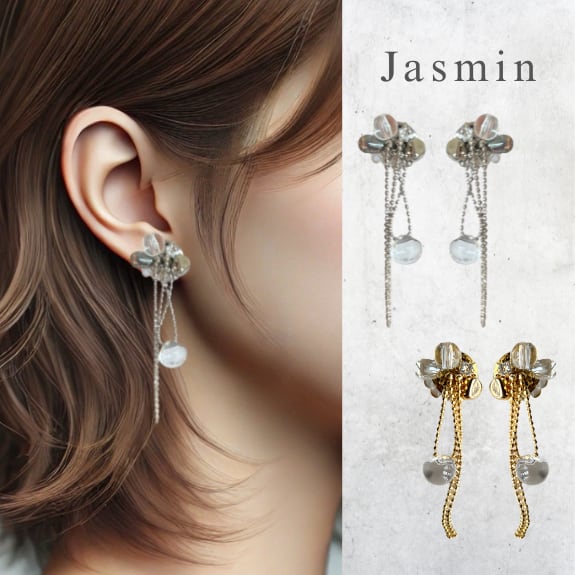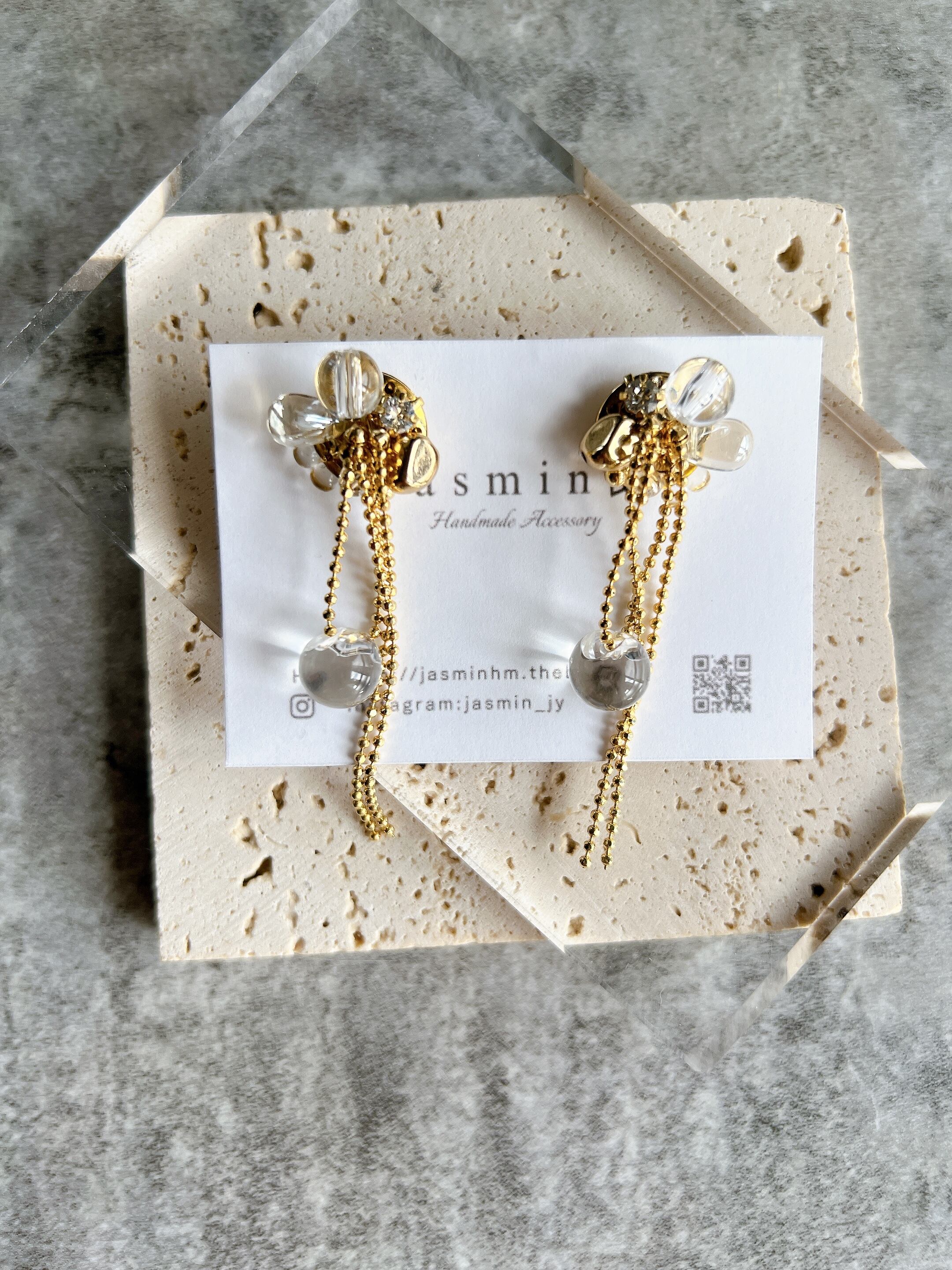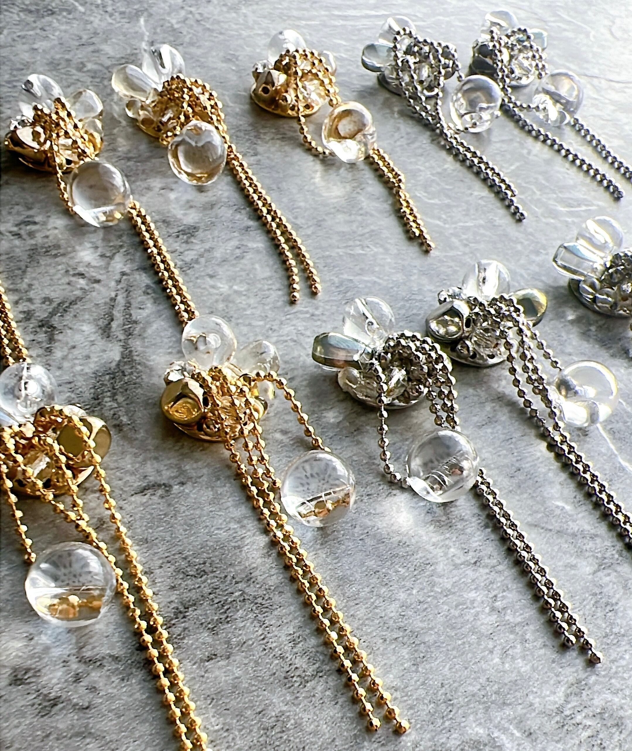 ワンポイントで下にクリアビーズ使用